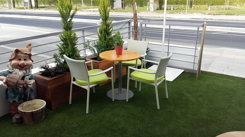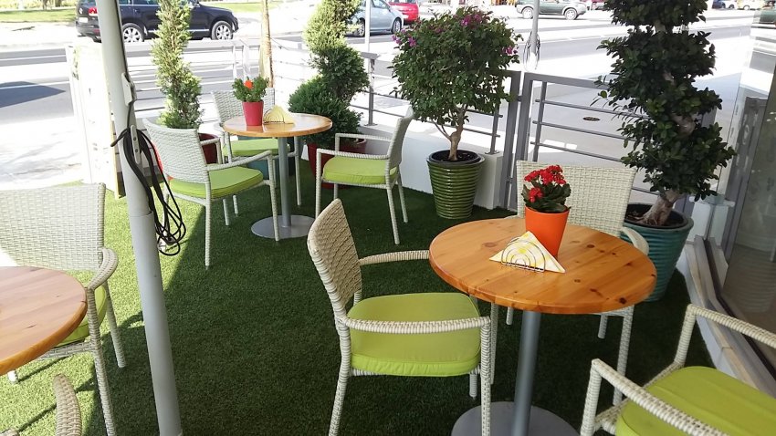 Outside seating area have plenty shade for those who prefer the outdoors dining, watching the world pass by.
